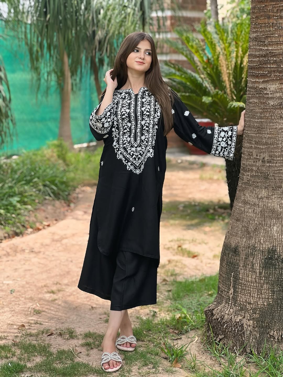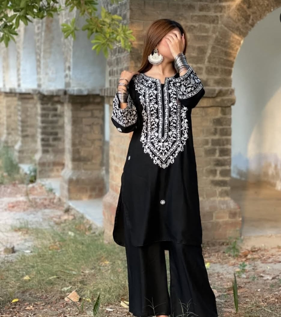 *LONG NECK EMB SHIRT+ PLAZO*